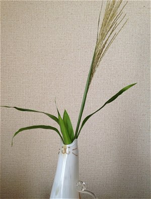 ![]() シロさんの月命日だね。 道端に咲いていたススキをとってきたよ。 |