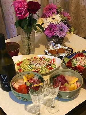 12年目の命日。シロさんと会えなくなって そんなに長い年月が過ぎたなんて 信じられな〜い。(*^^)v。 そっかー。しょっちゅう相棒さんと シロさんの話をしているし、 たま〜に夢の中で会ってるからだね。 ほんとはもっと夢の中に出てきて欲しいなあ。 久しぶりに花を買いました。 今日の夕食は、サーモンサラダを作ります。 そういえば、昨日はいわしの刺身だったから、 前夜祭みたいだね。 |