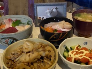 ![]() 17年目だよ。 コロナが激減して、緊急事態宣言が解除されて1ヵ月と少し。 賑わいが戻ってきたよ。 海鮮丼をつくりました。 シロさん(猫)は本当は魚より肉の方が好きかもしれないけど。 おいしかったね。 今日は路上にネズミが落ちていて。 もしかしたら、シロさんからの贈り物かなあ? 人様が困るから、脇にずらして、処理をして貰うよう手配したよ。 気持ちだけでいいんだよ、ありがとうね、シロさん。 |