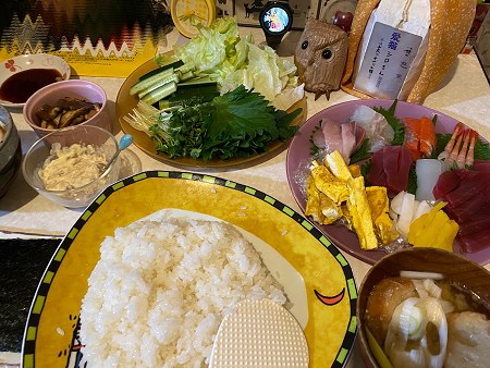今日は日曜日と14日が重なったね。シロさんの日みたい。 お世話になった病院で知り合ったDonと道でばったり会ったんだ。 どうしているかな。電話しよう。 と気になっていた人なので、びっくりした。シロさんが会わせてくれたのかな。 夕食はお刺身。シロさんはこの店のお刺身だけは必ず爆食いしたよね。 面白いね、なまり節は違う店のだけ爆食いだったよねー。 |