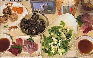 ![]() シロさん、またまたすごいね。 今日は月命日、そして命日「曜日」が重なった。更にさらに、中秋の名月だって。 夕食は手巻き寿司パーティを開催したよ。まぐろのお刺身を小さく切ってあげたから食べられたよね? デザートは月見だんご。おいしいね。 |