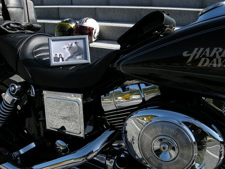 puzzlerなシロさんがまたやったのかもしれない。今日は猫の日。 相棒さんはお休みで、 ハーレーに乗って少々遠方を周遊してきたんだ。 まだ手に入れたばかりだから、乗り終えて車庫に入れたら走行距離を確認しているんだって。 今日のメーターは、2463。 「ニャーシロさん」だったんだって。 シロさんがいた頃、私達は楽しい空想をしていた。 相棒さんがいつかハーレーを手に入れたら、後ろに私が乗って、相棒さんと私の間にはシロさんを乗せて ツーリングするの。 あり得ない絵を描いて、空想して、愉快になった。 シロさんは気付いたのかもしれない。 ハーレーが我が家にやってきた事に。 空想の中で、一緒に風を感じようね。 どこにでも、一緒にいけるよ。 |