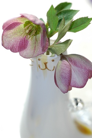 今日は猫の日。シロさんの曜日命日と重なったね。 日曜日はシロ城の花を新しくする日。 クリスマスローズが今年も綺麗に咲いたの。 先週から5輪が開いて、 まだ蕾がいっぱい。 今年は去年より、もっと沢山咲きそうだよ。 猫の花瓶に、とてもよく似合ってる。 綺麗だね。 |