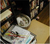 もう4年半もそのままにしていたね。このあゆベットとスポンジ座布団を処分したよ。いいよね? 2人の古い洋服と一緒にゴミに出したからね。 この本棚のど真ん中に、ずっとあったあゆベット。 寂しくて、そのままにしていたのではなく、 余韻を感じつつ、私が怠けていたんだ。 他にも、シロさんの想いでは残っているから、いいよね。 でも、無くなったら、やっぱりぽかーんと空いている。 ちょっぴり寂しい。 シロさんが鼻をぺろぺろ舐めてくれる夢を見たよ。 *写真は、2004年6月17日のものです。 |
