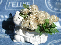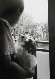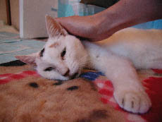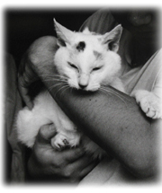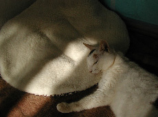 シロさんと会えた。今朝の夢の中で。 やったー!すごく嬉しい。 「ん?なあに?」という顔をして 何事もなかったように私を迎えてくれた。 シロさんは大人だね。私の心は大はしゃぎだよ。 でも、大人なシロさんにバレないように、 私もいつものように普通に振舞った。 頭から背中へ、そしてしっぽの付け根の方へ あの頃と同じようにそっと撫でた。 いつもの シロさんだった。やわらかかった。 ふっくらしていて ふわふわしていて 最後の方の痩せた体ではなかった。 心の中がシロさんの匂いでいっぱいになった。 何も変わらずに、こうして生き続けるんだね。 少しずつ、永遠であることがわかってきた。 |
