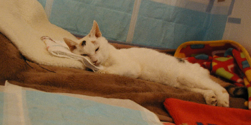 シーツに砂だけの新・トイレを無事に受け入れてくれた。 |